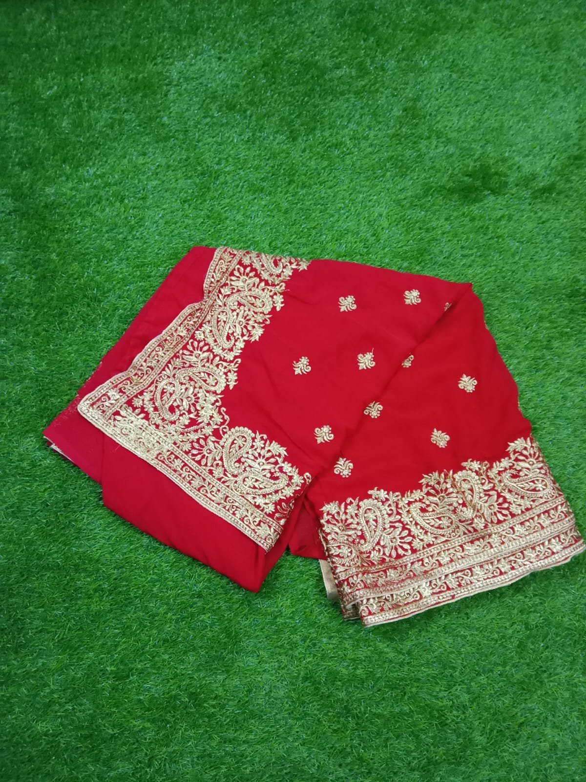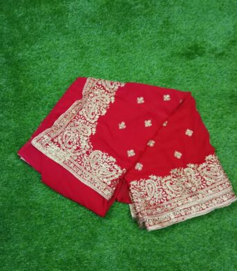 এই কালারের শাড়িটি ইন্ডিয়ান ওয়েটলেস সফট জর্জেট ফ্যাব্রিক দিয়ে তৈরী করা এবং সম্পূর্ণ শাড়ি জরি কালার সুতার এমব্রয়ডারি কাজ এটিকে আরও আকর্ষণীয় করে তোলে এবং যেকোনো বিশেষ অনুষ্ঠানের পরিধানের জন্য উপযুক্ত।