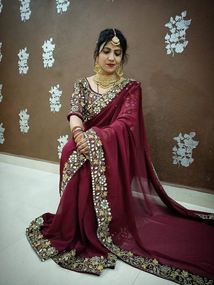 এই কালারের শাড়িটি ইন্ডিয়ান ওয়েটলেস সফট জর্জেট ফ্যাব্রিক দিয়ে তৈরী করা এবং সম্পূর্ণ শাড়ি সিদ্ধ জলপাই ও জরির এমব্রয়ডারি কাজ এটিকে আরও আকর্ষণীয় করে তোলে এবং যেকোনো বিশেষ অনুষ্ঠানের পরিধানের জন্য উপযুক্ত।