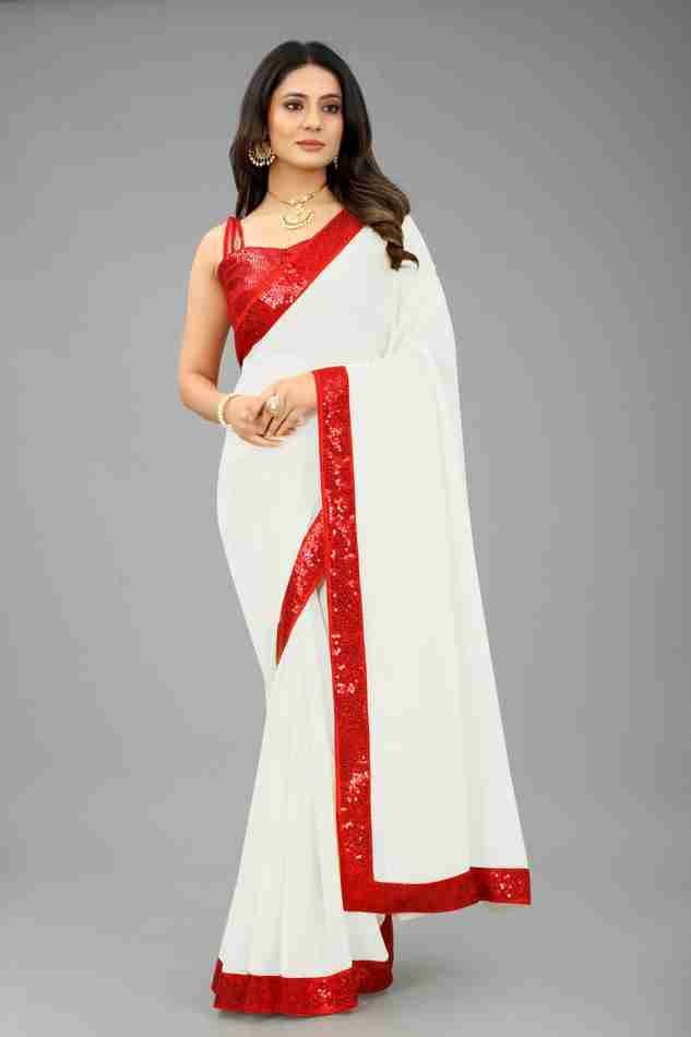 এই কালারের শাড়িটি ইন্ডিয়ান ওয়েটলেস সফট জর্জেট ফ্যাব্রিক দিয়ে তৈরী করা এবং সম্পূর্ণ শাড়ি লাল লেস লাগানো