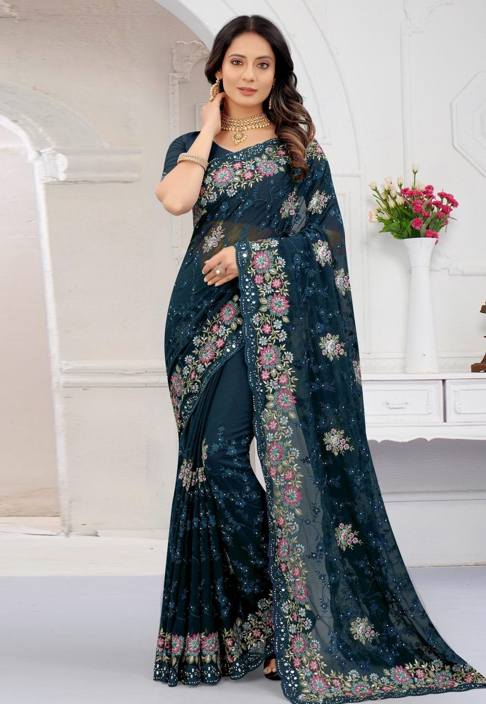 এক্সক্লুসিভ ওয়েটলেস জর্জেট এমব্রয়ডারি করা শাড়ি