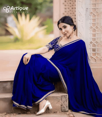 এই ব্লু কালারের শাড়ি টি ইন্ডিয়ান ওয়েটলেস সফট জর্জেট ফ্যাব্রিক দিয়ে তৈরী করা এবং সম্পূর্ণ শাড়ির আঁচল ও কুঁচি জুড়ে নিখুঁত রেশমি সুতার লেইস ওয়ার্ক এটিকে আরও আকর্ষণীয় করে তোলে এবং যেকোনো বিশেষ অনুষ্ঠানের পরিধানের জন্য উপযুক্ত।