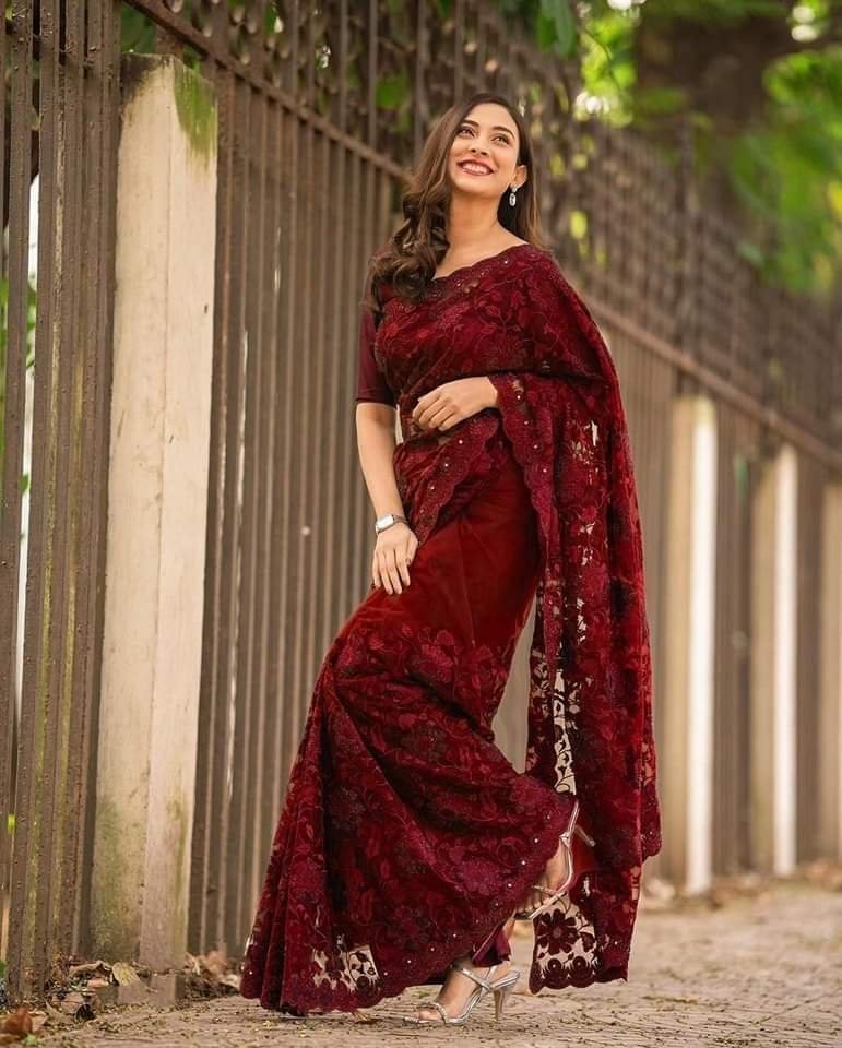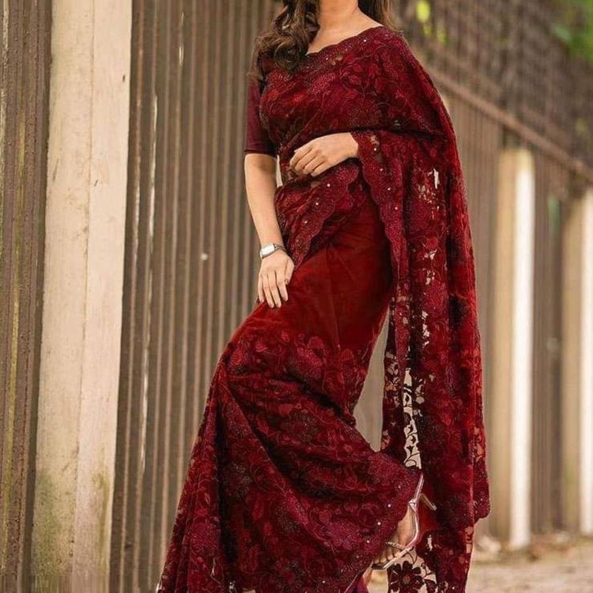 প্রিমিয়াম অর্গানজা ফ্যাব্রিক এমব্রয়ডারি করা পার্টি শাড়ি